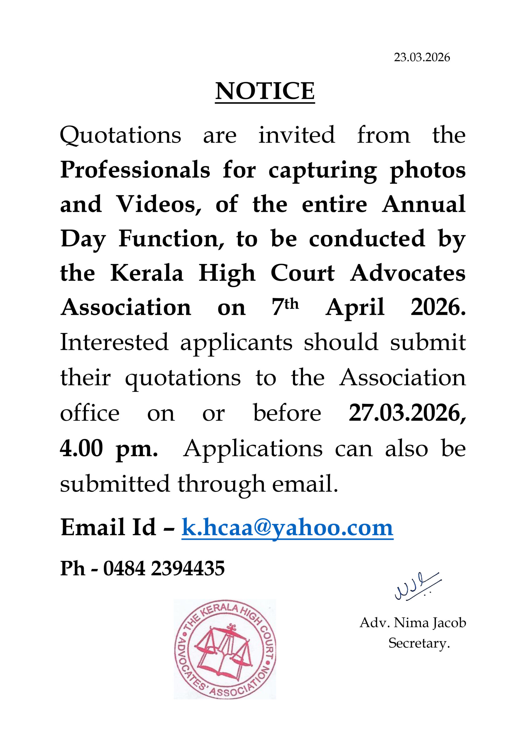Annual Day 2026 : Quotations inviting Photographers