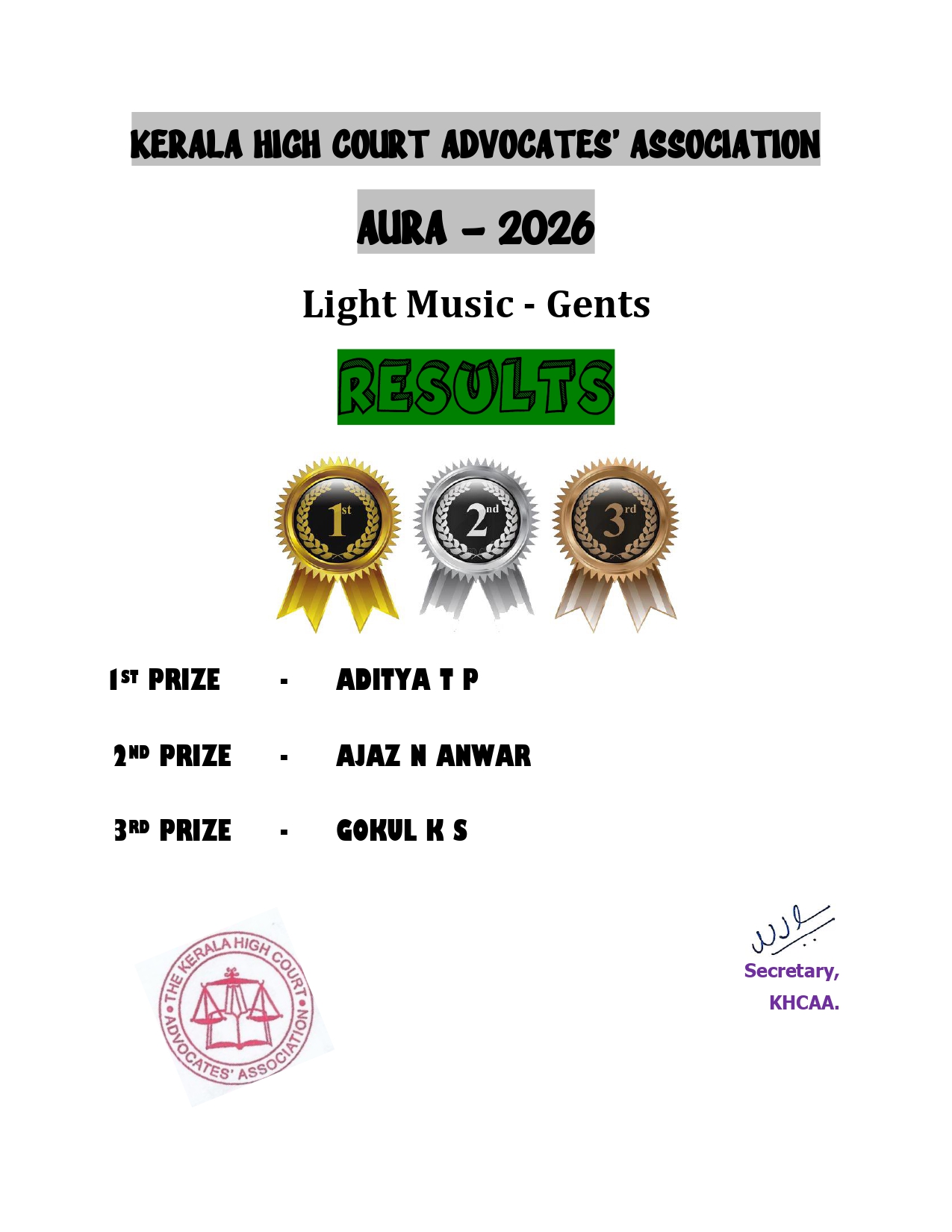 AURA-2026 : Light Music – Gents Result