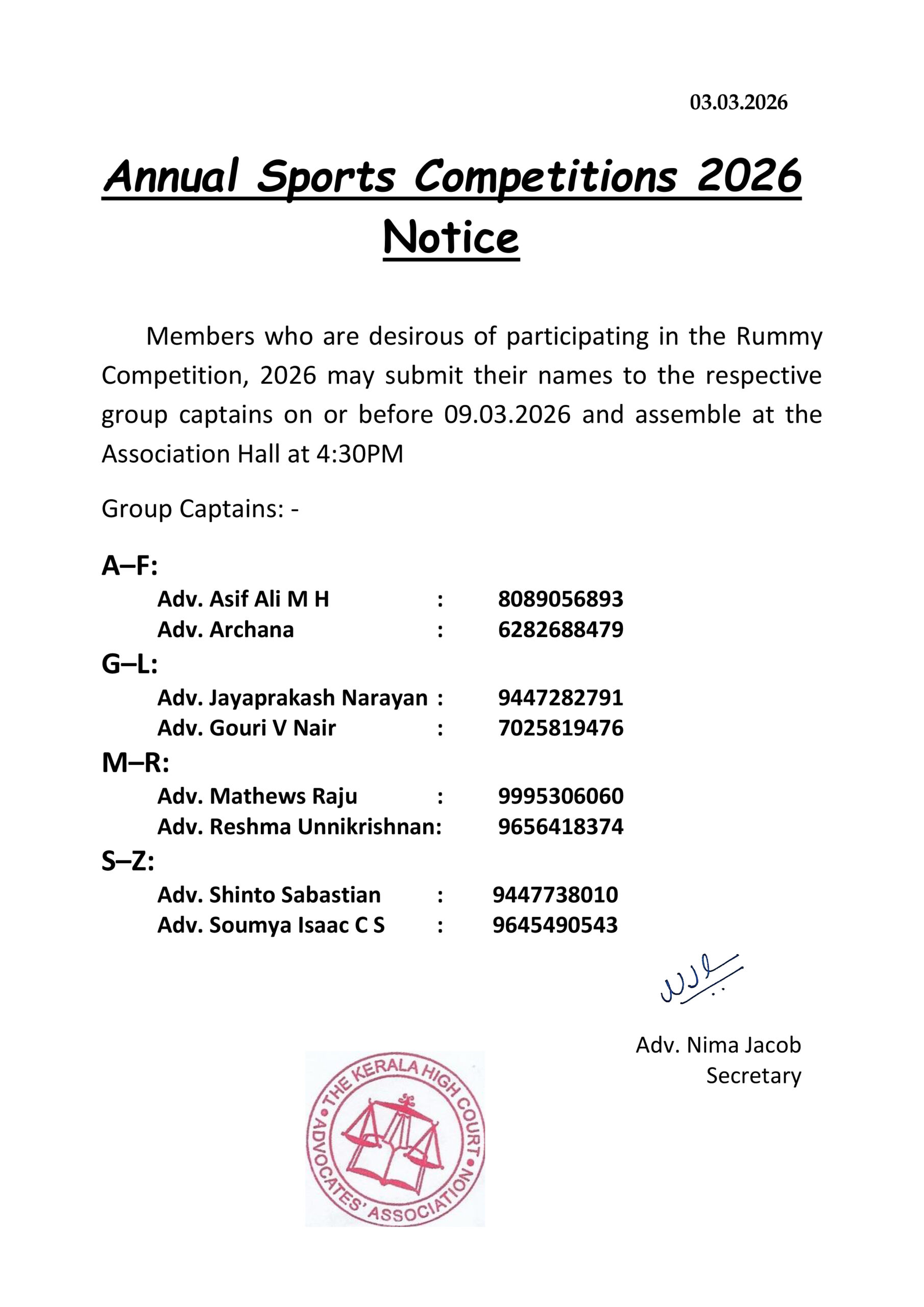 Decision of the General Body Meeting held on 02.03.2026