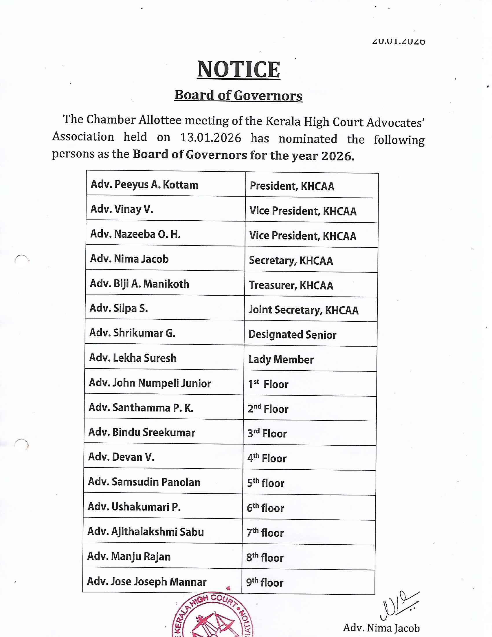 Board of Governors – 2026