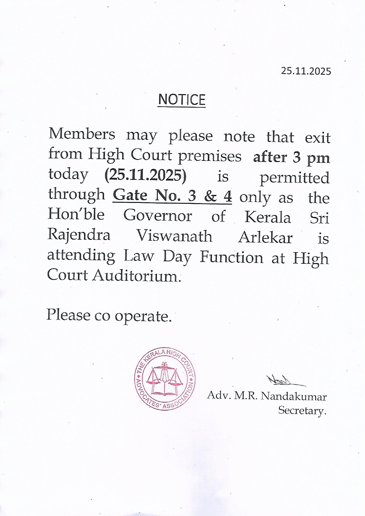 Entry Restriction – 25.11.2025 (After 3:00 PM)