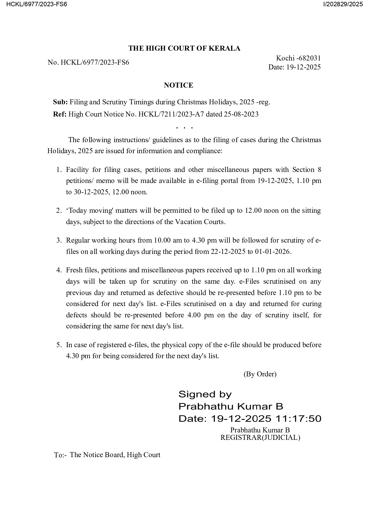 Filing & Scrutiny Timings – Christmas Vacation, 2025