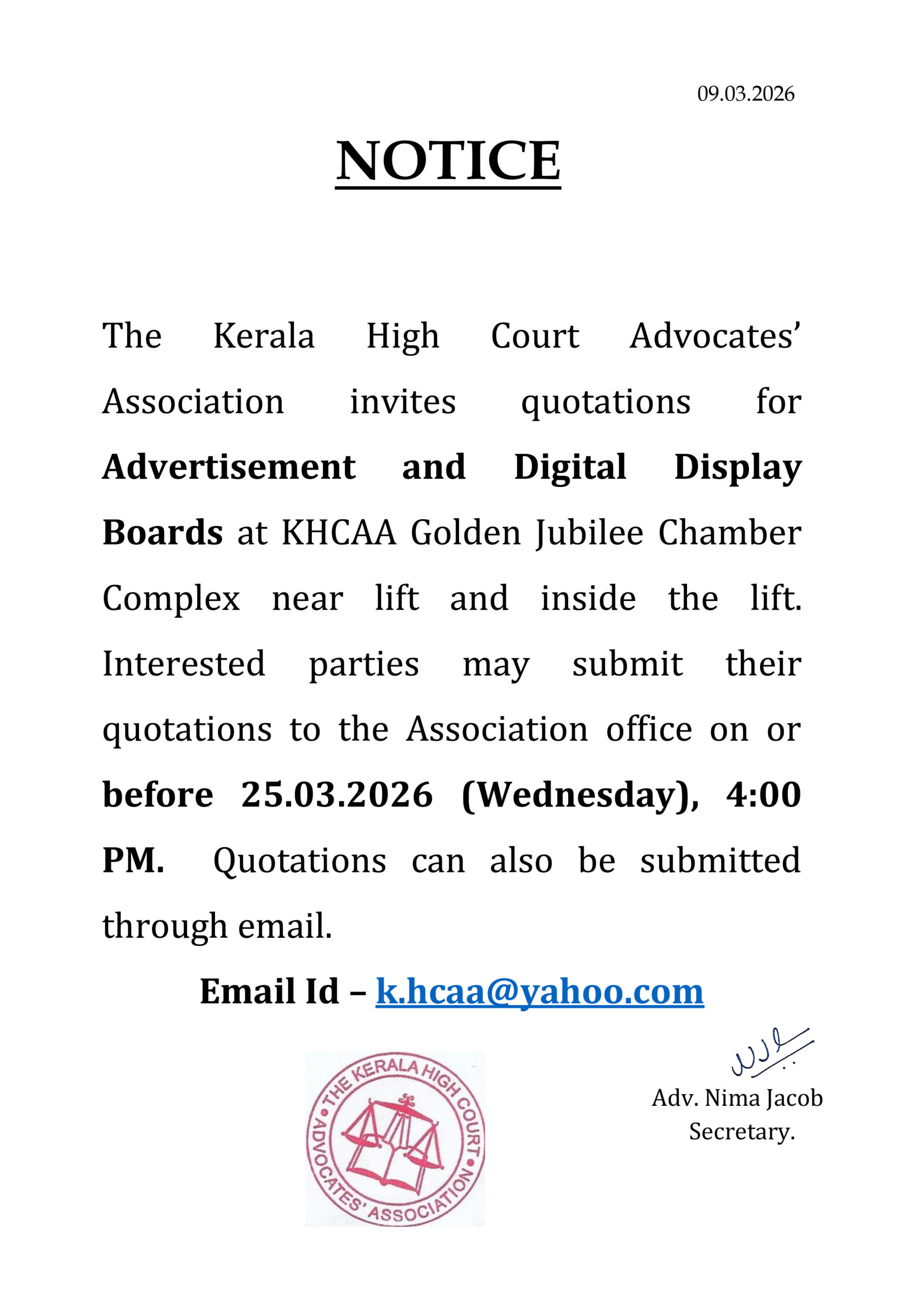 Inviting Quotations : Advertisements & Digital Display Boards