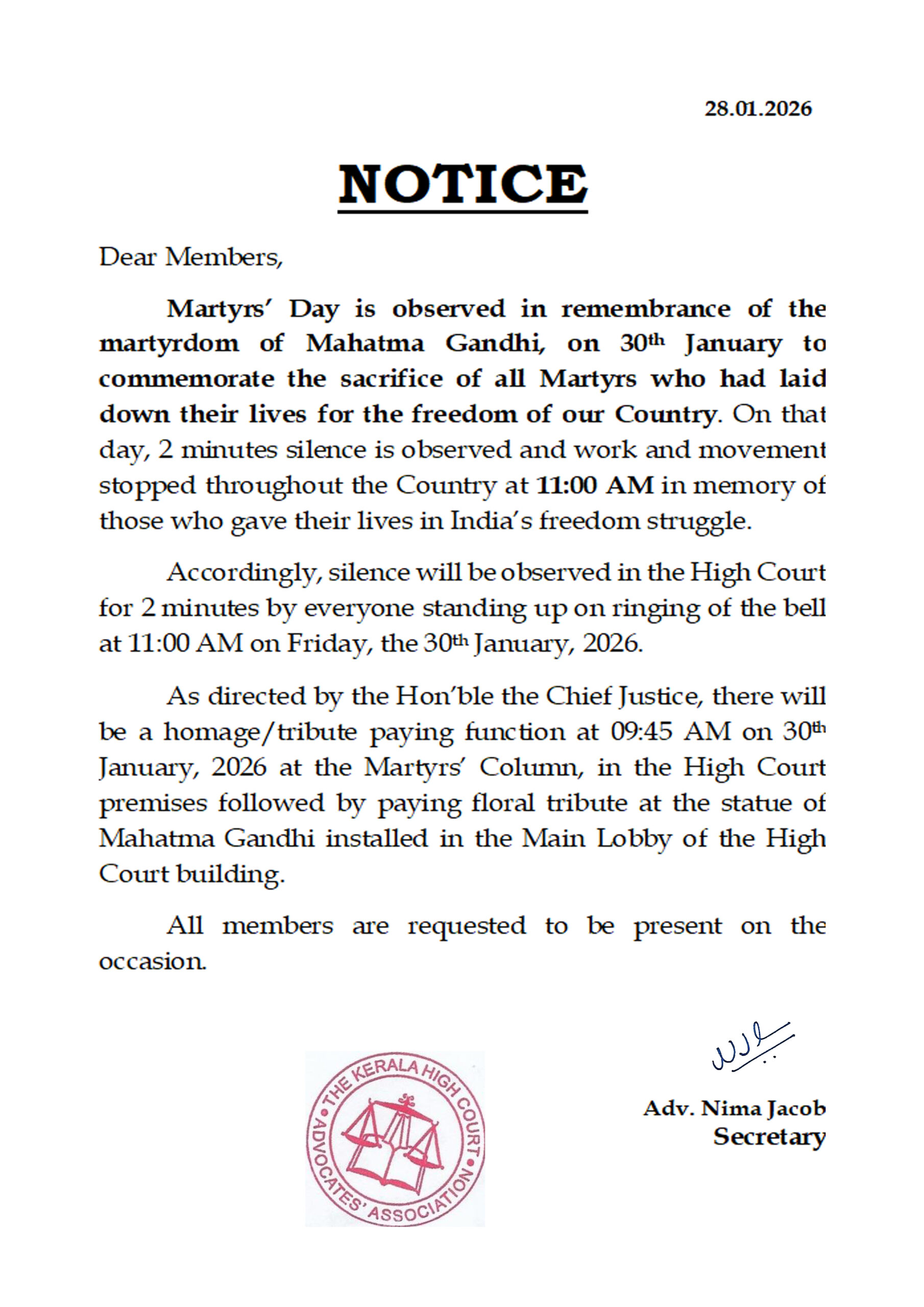 Martyrs’ Day – 30.01.2026