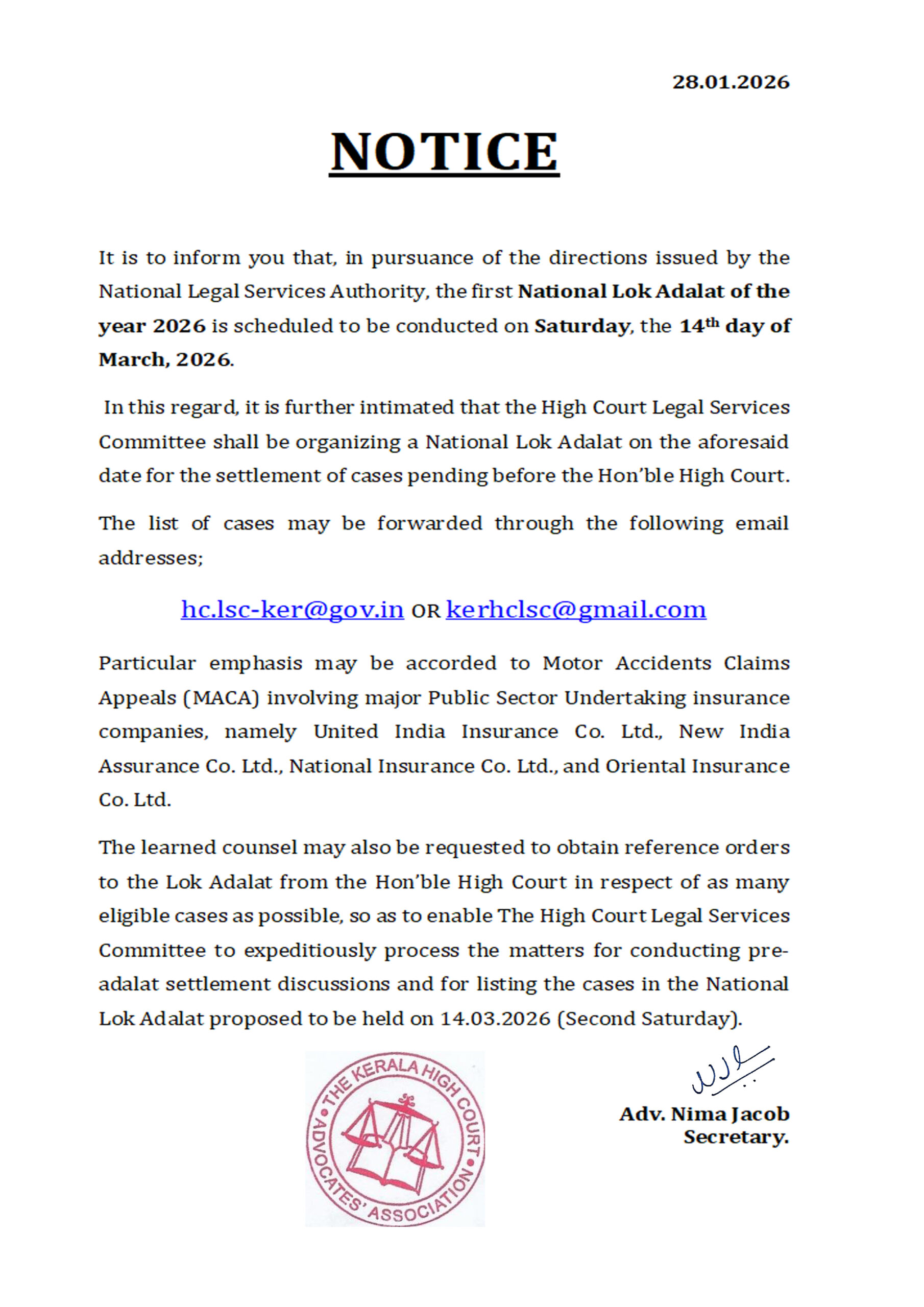 National Lok Adalat – 14.03.2026