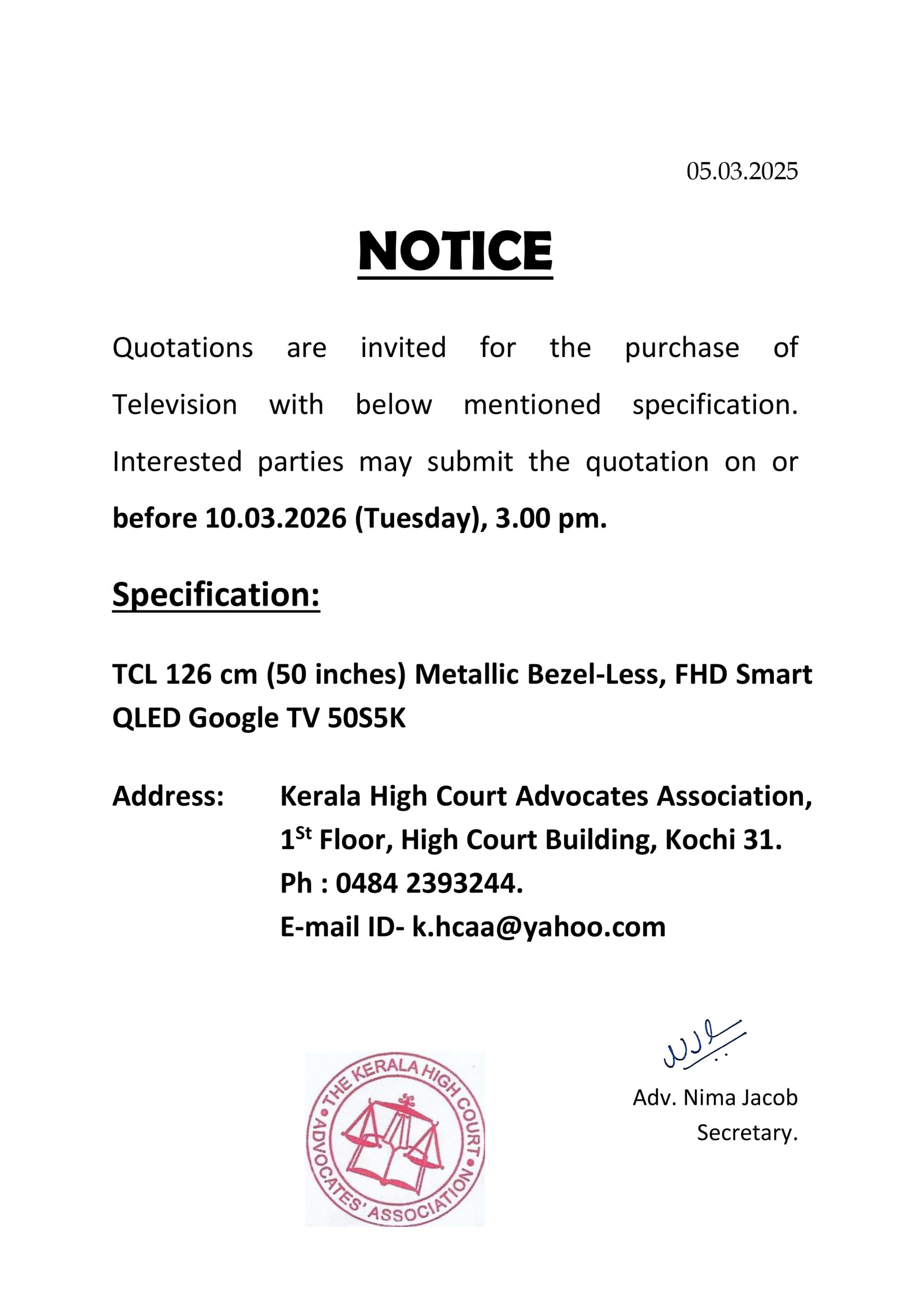 Tender Notice – Advocates’ Directory 2025