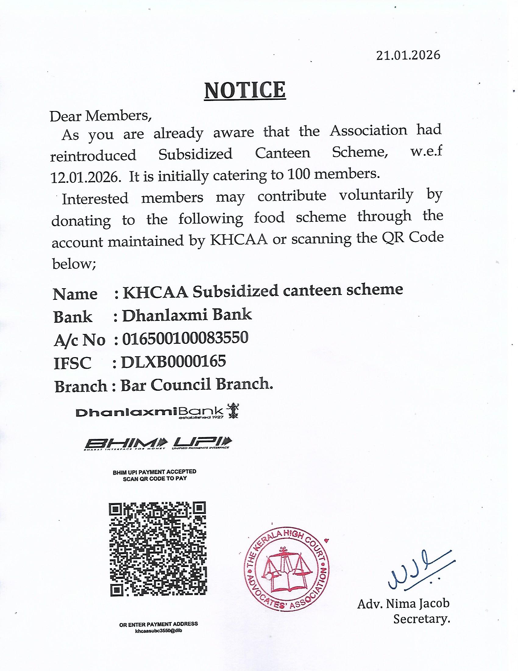Requesting Donation for Subsidized Canteen Scheme