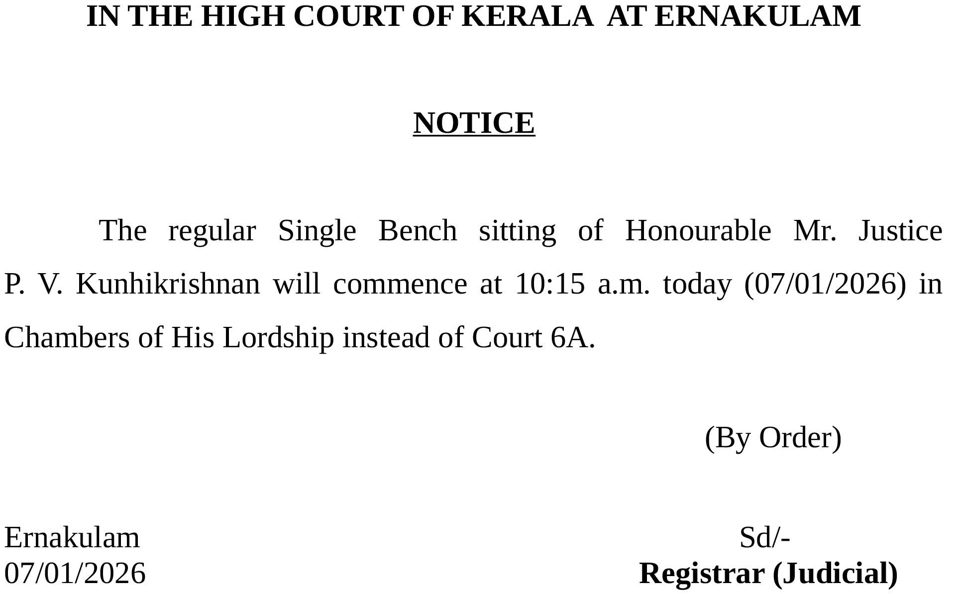 Sitting Notice : 07.01.2026