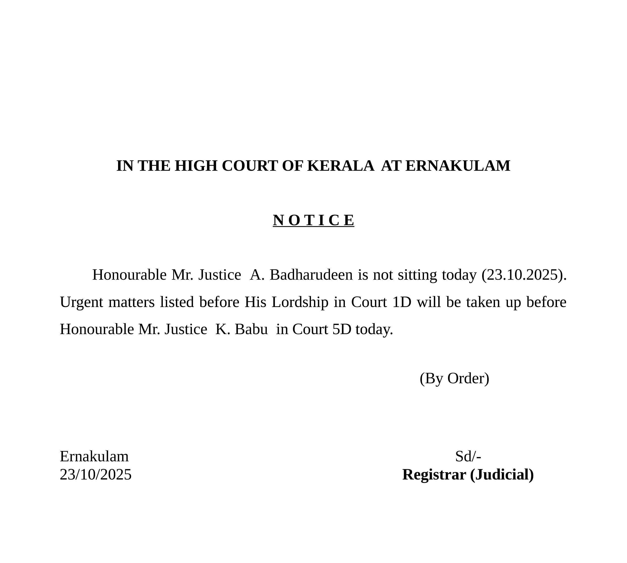 Sitting Notice – 23.10.2025