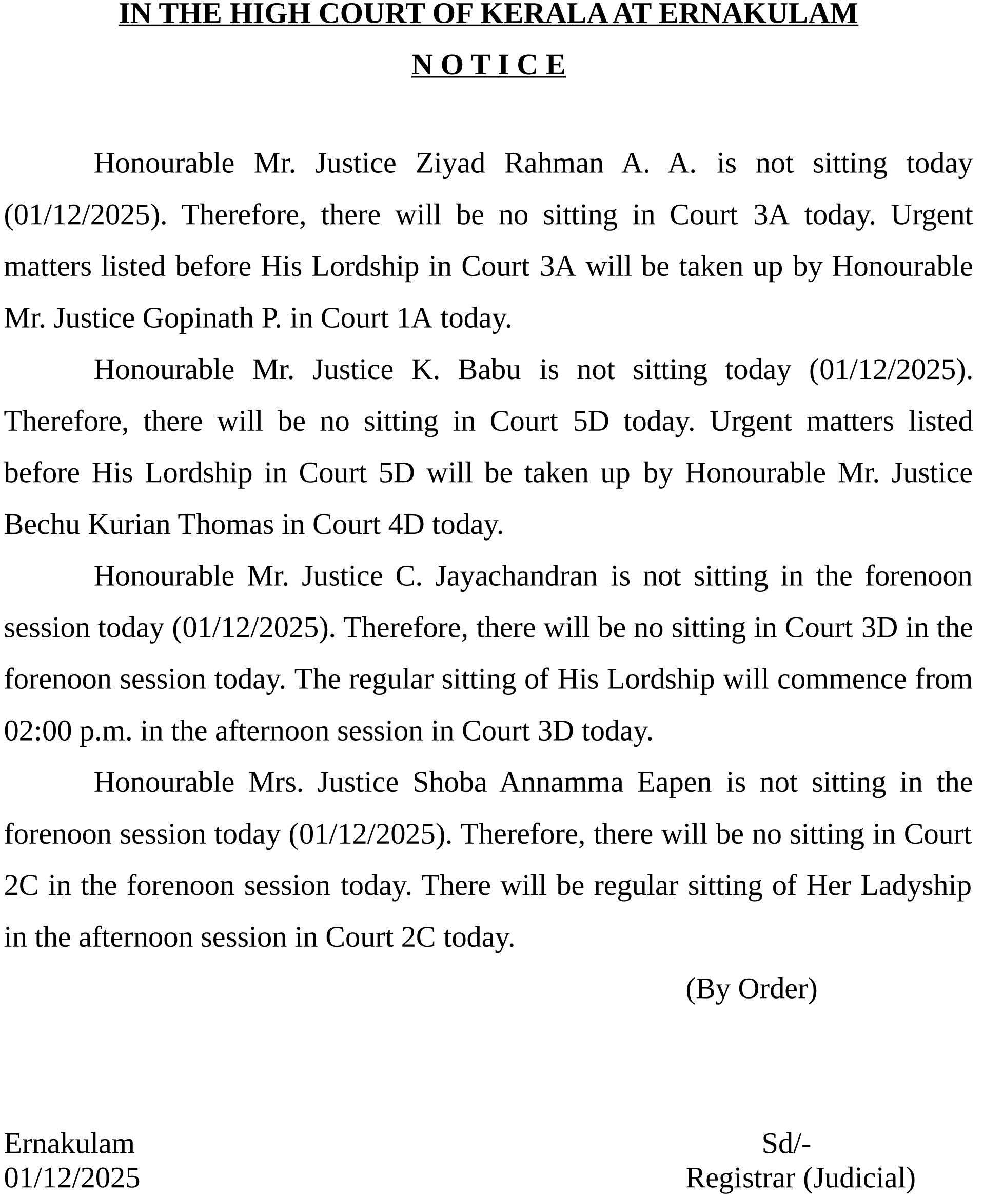 Notification : Sitting Day – 25.10.2025