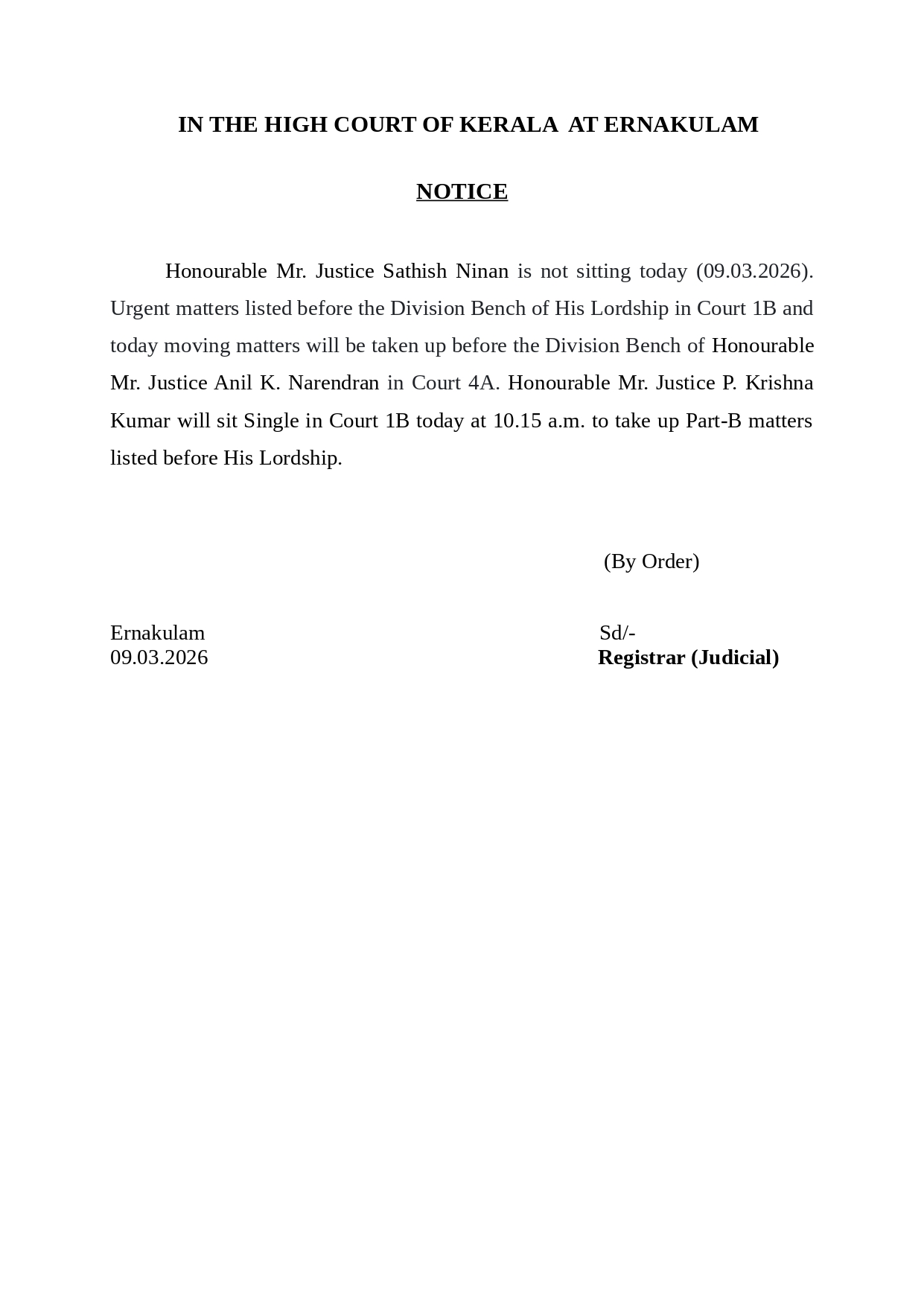 Sitting Notification – 09.03.2026