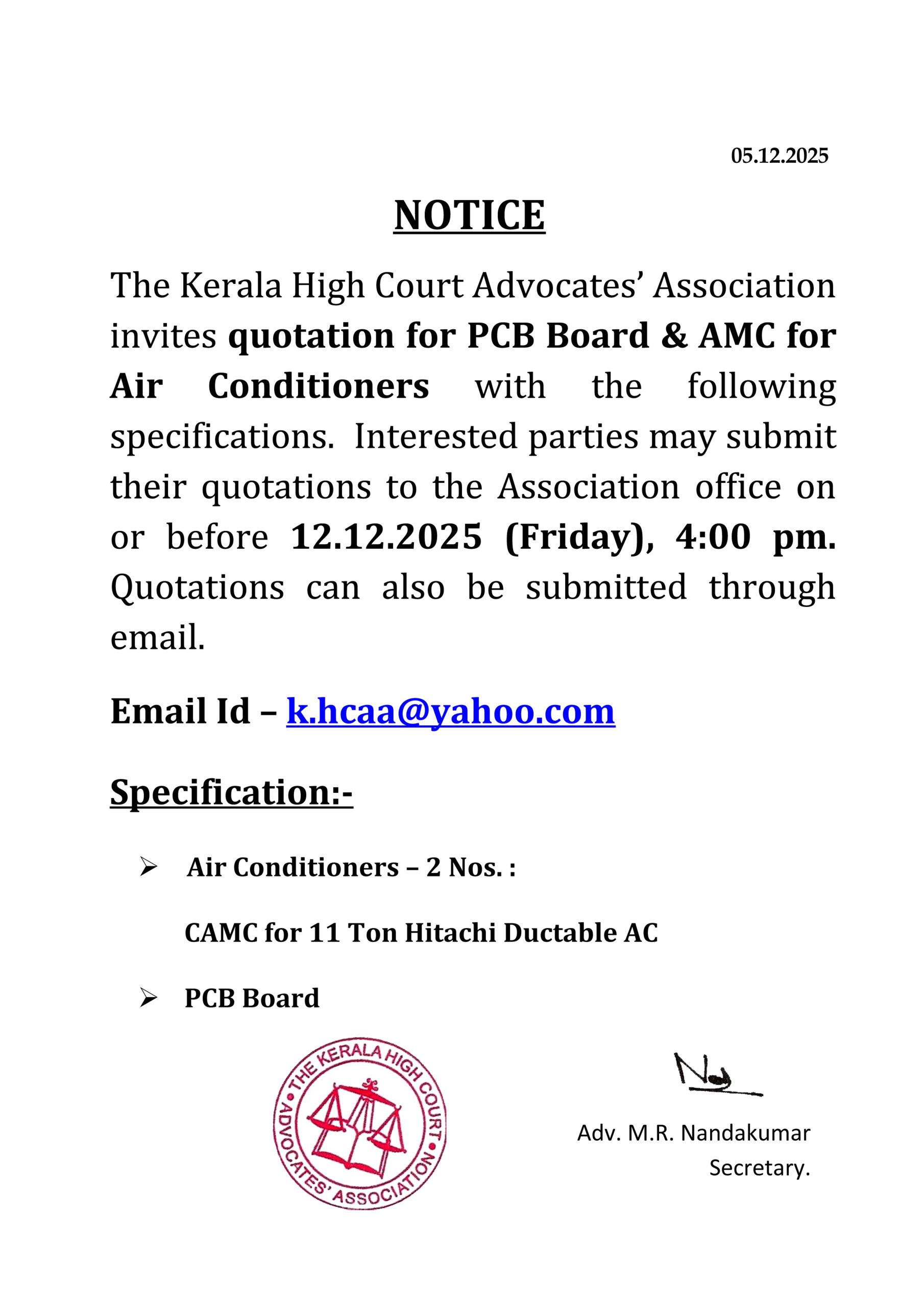 Kerala High Court Arbitration Centre Notification – 04.12.2025